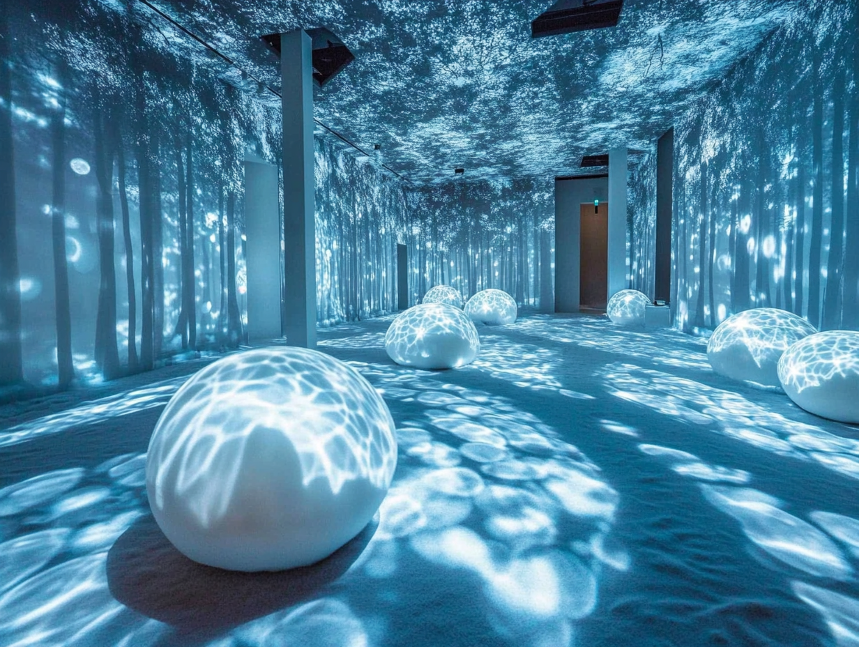 Research shows that sound plays a crucial role in guiding psychedelic experiences, but poor acoustics can be disruptive. Designers can ensure that acoustics enhance the experience, whether through curved walls that prevent echoes, materials that absorb disruptive noise, or speaker placement that creates an immersive soundscape. Imagine if we explored the full effects of vibroacoustics, how might this be incorporated into our environments to make them more sensorial?