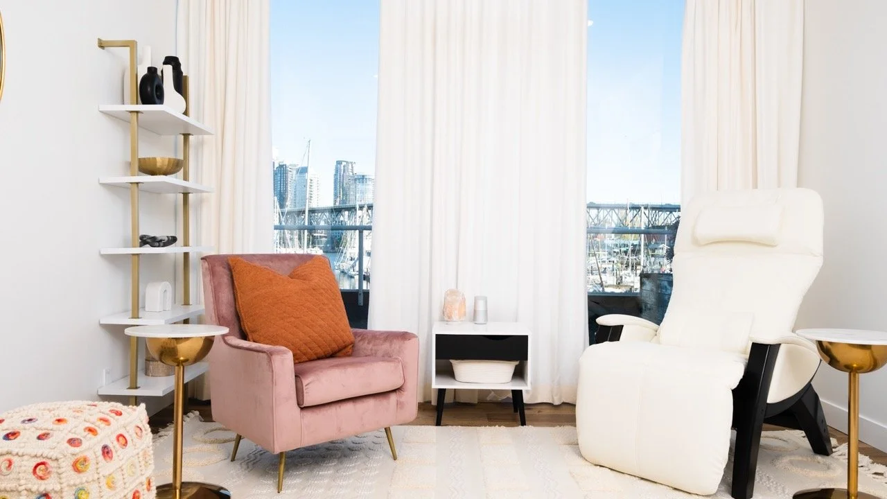 Supportive Healing Space: Warm and welcoming modern therapy room by Field Trip Health (now called Stella). Photo Credit: Field Trip Health